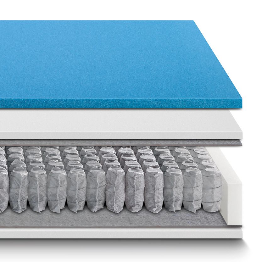 SISTEMA TOP BOX: il sistema TOP BOX è la struttura in schiuma, lavorata ad acqua, ad alta densità all’interno della quale sono posizionate e protette le molle insacchettate. Garantisce robustezza e indeformabilità al materasso anche lungo il suo perimetro.
